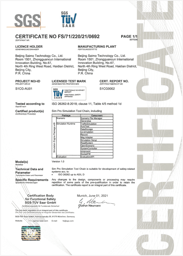 仿真工具Sim Pro通过ISO 26262项下的ASIL